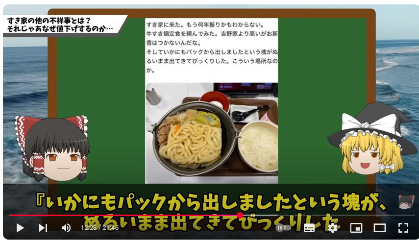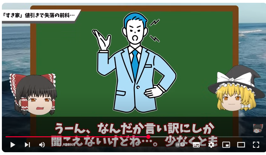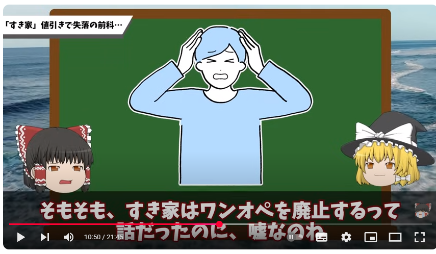 私が前に見た動画を見返すと、すき家の対応は酷いですね。