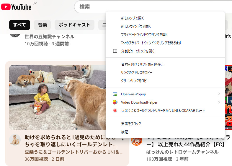 他の普通のyoutubeのものを右クリックすると下のような状態になります。