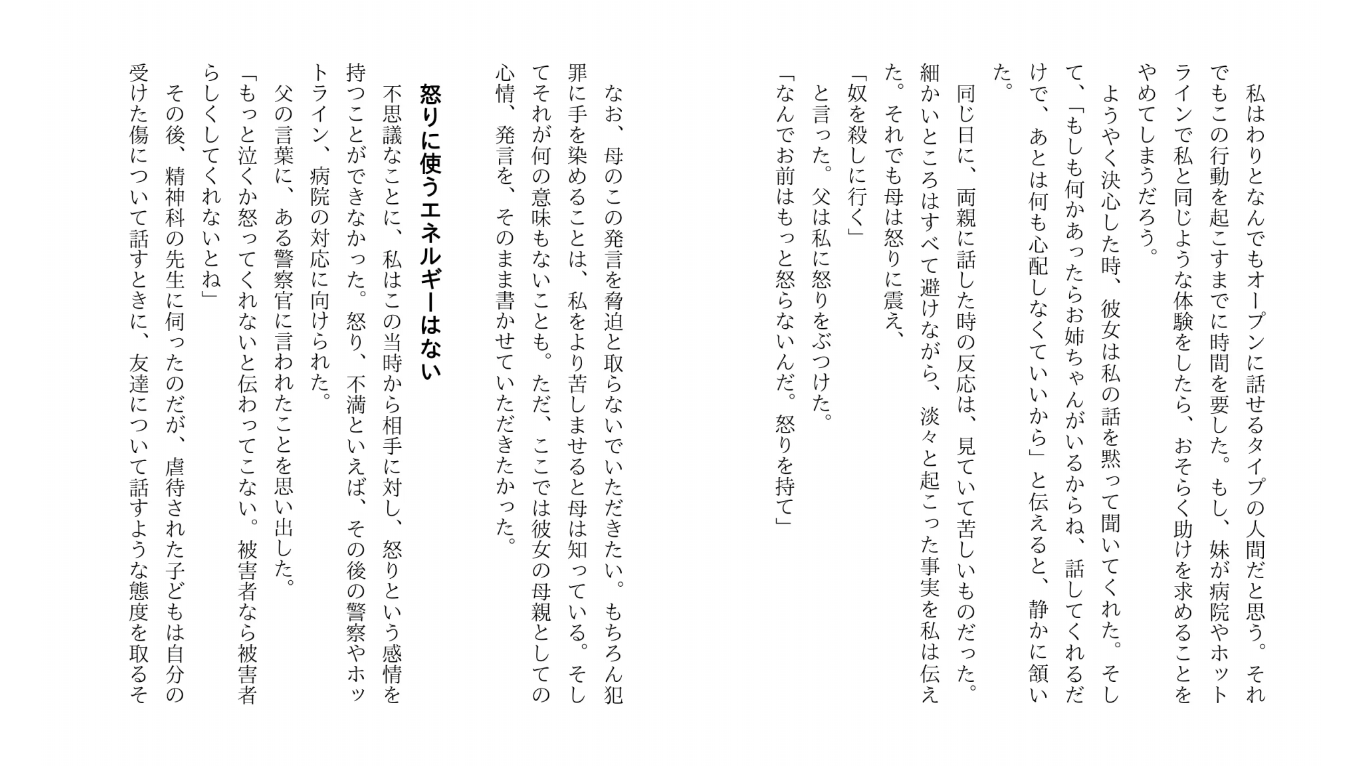 私の場合、それまでのいろんな光景を見てきたし、そういうのも見せられたりで、今もかなり怒るキャラになってるんですけど、・・・でもわかると思うんですけど・・普通・・。