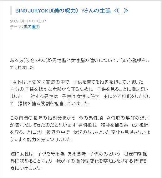 いろいろ考えられますが、他の誰かが「男脳と女脳」という題材に関して書いたものだと見えます。